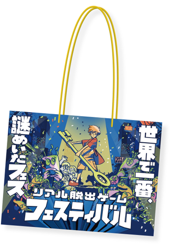 また、『リアル脱出ゲームフェスティバル』のオリジナルグッズをご購入いただいた方には、税込6,000円のご購入毎に「フェス限定謎」をランダムでプレゼント(全3種)。さらに、グッズの持ち帰りにも便利な『リアル脱出ゲームフェスティバル』のメインビジュアルを使用した「フェス限定ショッパー」も税込6,000円以上の購入で付属いたします。