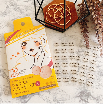 「うるるフェイス」と「はるコスメ カバーテープS」のセットです。「うるるフェイス」は張りと潤いをもたらすナイトケアー製品です。「はるコスメ カバーテープS」はニキビを簡単に隠せるアイテムです。