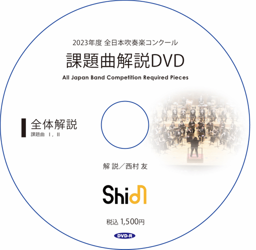 2年ごとに課題曲の参考演奏を担当するShionならではのDVDとなっており、「指揮者西村友氏による全体解説編」、「楽団員によるパート別解説と実演編」、フルセットと多数ご用意。この機会にぜひお買い求めください。