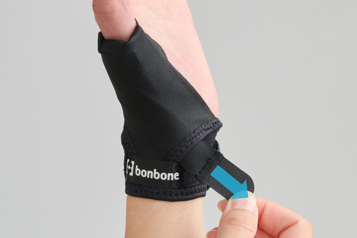 ペットボトルの蓋を開ける・ドアノブをまわす等の負荷のかかる関節の動きを、クロスベルトでしっかりと制限します。トラブルの程度に合わせて、クロスベルトの引っ張り加減を変えることで、ご自身に合うサポート力に調整できます。