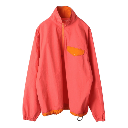 今回の別注では、コットンタイプライター素材を使用したハーフジップブルゾン1型をホワイト×レモンイエロー、サンゴピンク×キャロット、ブルー×ダークパープルの計3色で展開。