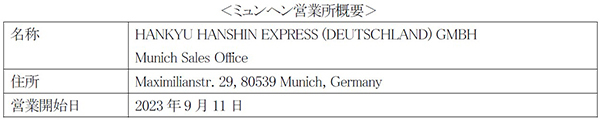 当社ドイツ法人であるHANKYU HANSHIN EXPRESS (DEUTSCHLAND) GMBHは、ドイツ南部のミュンヘンに新たに営業所を開設し、9月11日より営業を開始します。