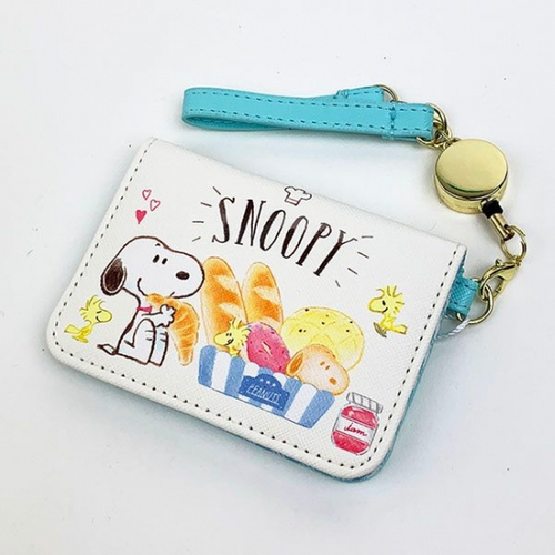 お次はリールストラップつきのパスケースです。こちらもベーカリーがたくさんデザインされていて、中にはスヌーピーのパンも?サイズは10×7.5×1cmの定番サイズです。