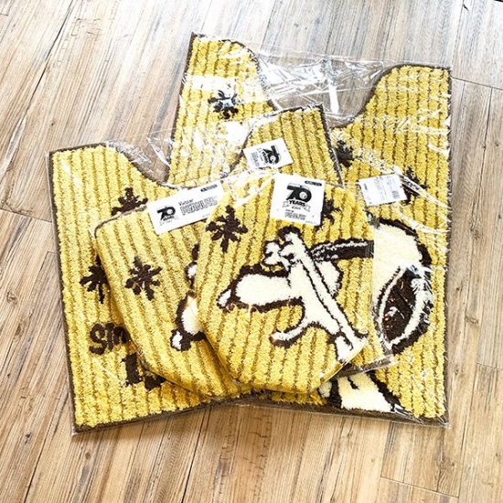 こんにちは♫こちらのコーナーでは、最新登場のアイテムをなるべく速く、お届けしています。今回はスヌーピーのトイレグッズ。肌さわりのよいふわふわな生地のマットがトイレを快適にしてくれそうですね♪