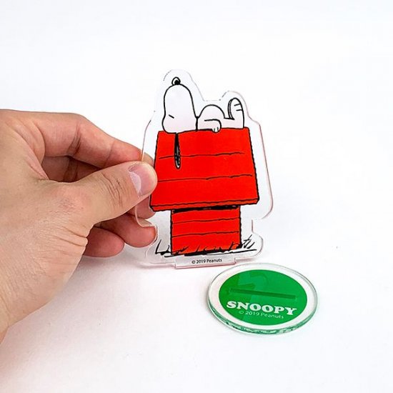 スヌーピーのお馴染みドッグハウスのデザインが、アクリルのスタンドになっています。ダイカットデザインなので、ハウスの上のスヌーピーのフォルムもそのまま♡