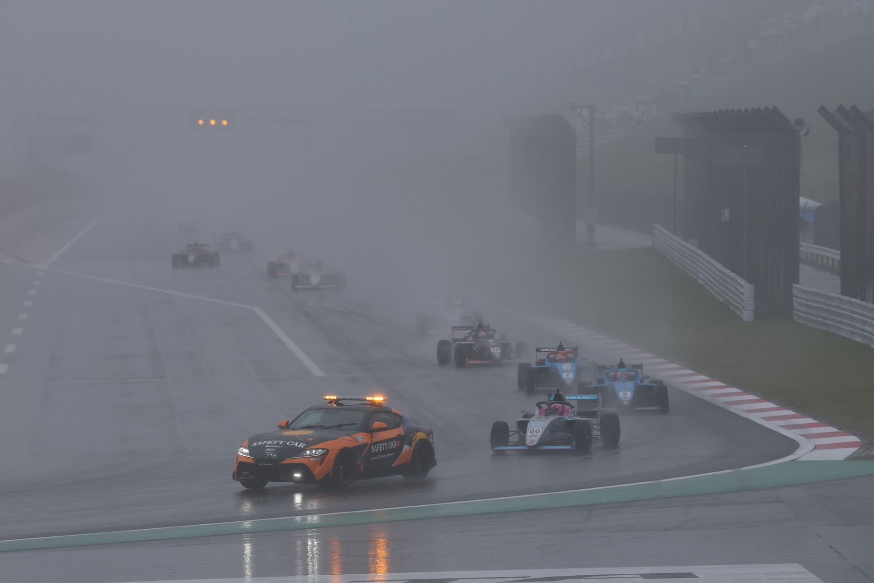 13時05分から10周で争われたKYOJO Sprintは本降りの雨と濃霧の影響を受けてセーフティカーの先導のもとで開始され、4周目にローリングスタートが切られた。スタート手前の13コーナーでタイミングよく加速し後続を引き離した下野が序盤からレースをリードするなか、4番手の佐藤が4周目のTGRコーナーで翁長にバトルを仕掛ける。しかし翁長も簡単にはポジションを譲らず、佐藤を退けて3番手を死守した。ペースを上げた翁長は2番手の#8 佐々木藍咲(LHG KDDP KC-MG01)を猛追し、5周目にKCMG同士のチームバトルが勃発。ミスを喫した佐々木の隙をついた翁長は一気に間合いを縮めてGR GTコーナーで佐々木を攻略し、2番手に順位を上げた。各所でスピンやオーバーランを喫するドライバーが徐々に出始める一方、下野はファステストラップを記録しながら独走。ペースを落とすことなくチェッカーまで快走を続けた下野がKYOJO Sprint を制し、Rd.3の2レースに続く今季5勝目を飾った。2位には翁長が続き、シフトトラブルによって順位を落とした佐々木に代わって佐藤が3位を獲得した。