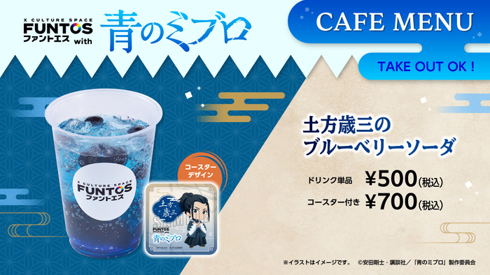 『青のミブロ』の世界観に装飾された店内でコラボレーションを心ゆくまでお楽しみください。
