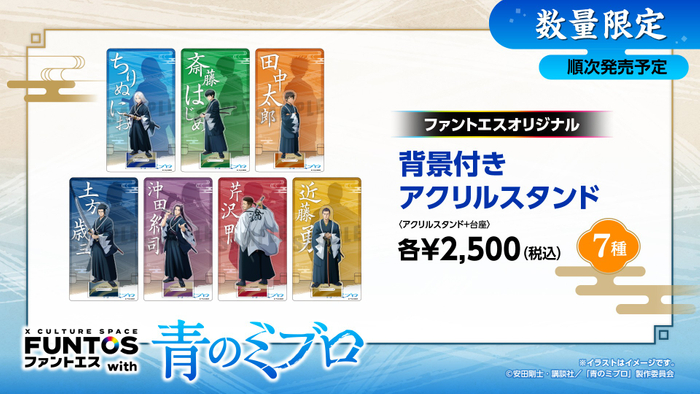 TVアニメ『青のミブロ』7人の描き起こしミニキャラグッズが登場!「ファントエス with 青のミブロ」は11/27(水)スタート!
