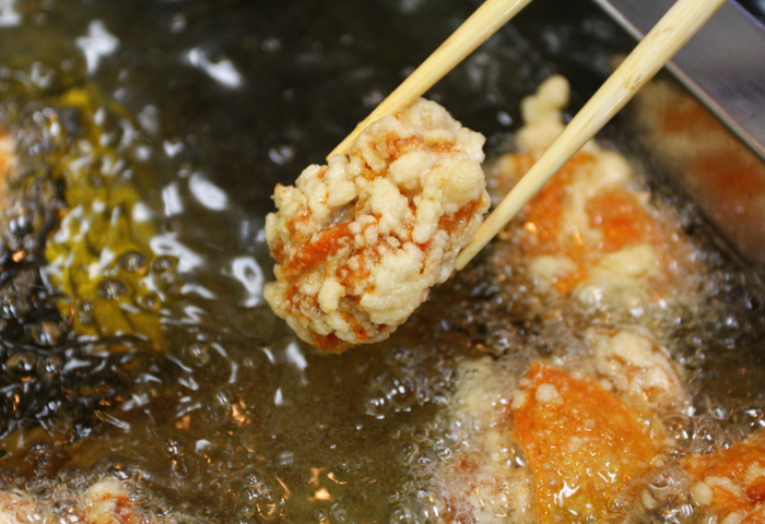 とても混雑するランチ時でも注文を受けてから揚げるスタイルを維持し、カリッとジューシーな揚げたてを堪能できます。