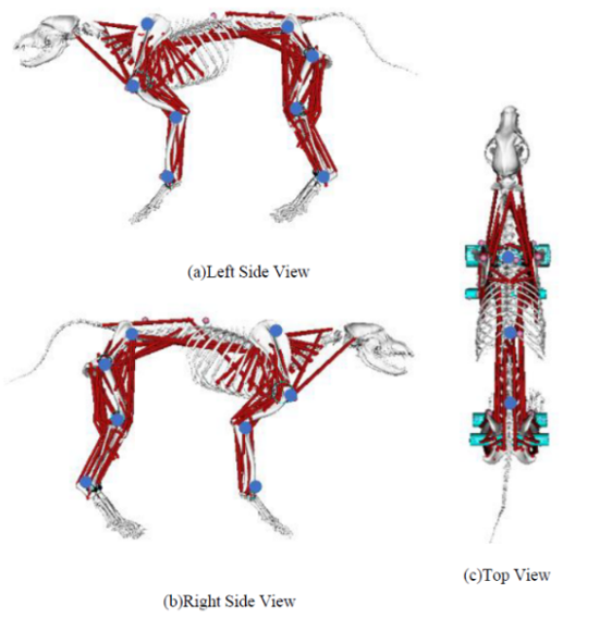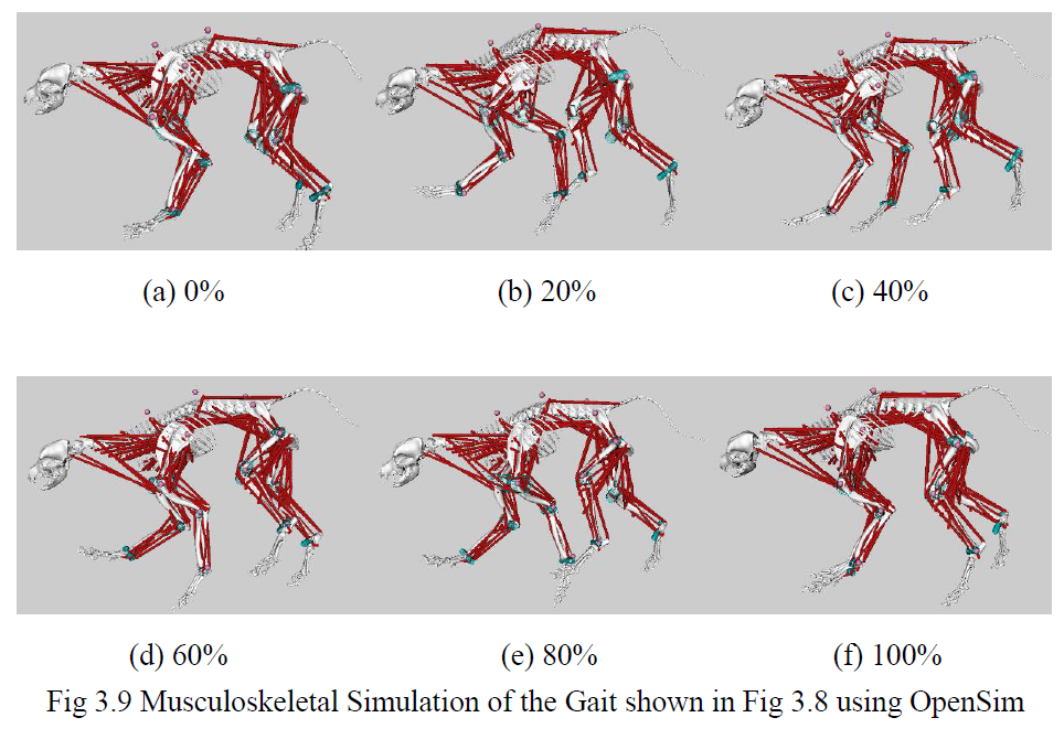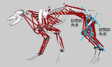 本研究は筋骨格解析技術を小型犬の歩行解析に応用した