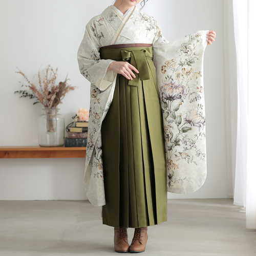 卒業式・修了式に!京都きもの町オリジナル袴「南天刺繍」、スモーキーピンク・オリーブ・ダークグリーン・イエローベージュ発売