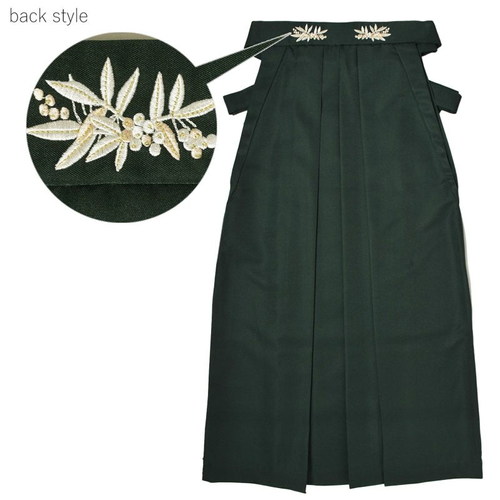 前は凛々しい無地袴、後ろにハッと目を引くワンポイントが人気のきもの町の刺繍袴。