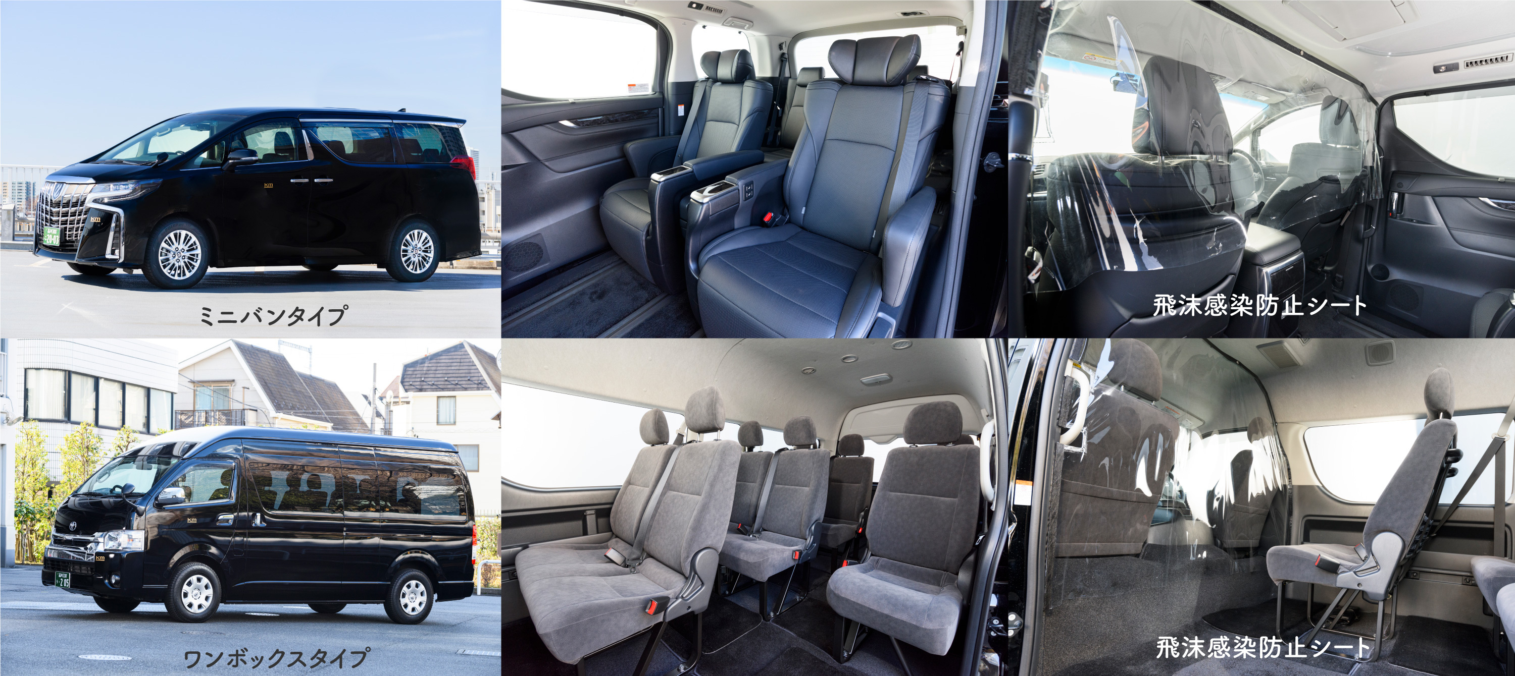 飛沫防止ビニールカーテンと弱酸性次亜塩素酸による消毒等、感染予防対策を徹底した車両と、新型コロナワクチン職域接種により9割以上が接種済であるドライバーにより、安心・安全な移動をご提供いたします。また、マイカーでのご移動で発生する駐車場の心配や、お食事でアルコールを召し上がれないストレスなどから解放されます。
