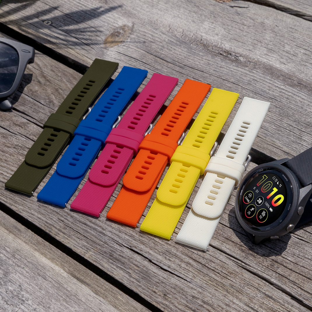 人気の既存商品BYTEに新カラーが登場。夏らしいビビットなカラーをメインに、新たに6色を追加。フラットなつく棒とドット加工された表面のデザインで、スポーティーなスタイルにぴったりのシリコンバンドです。クリッカー加工をしているので、付け替えがワンタッチで簡単にできるのもポイントです。通常の腕時計だけでなく、スマートウォッチにもおすすめです。