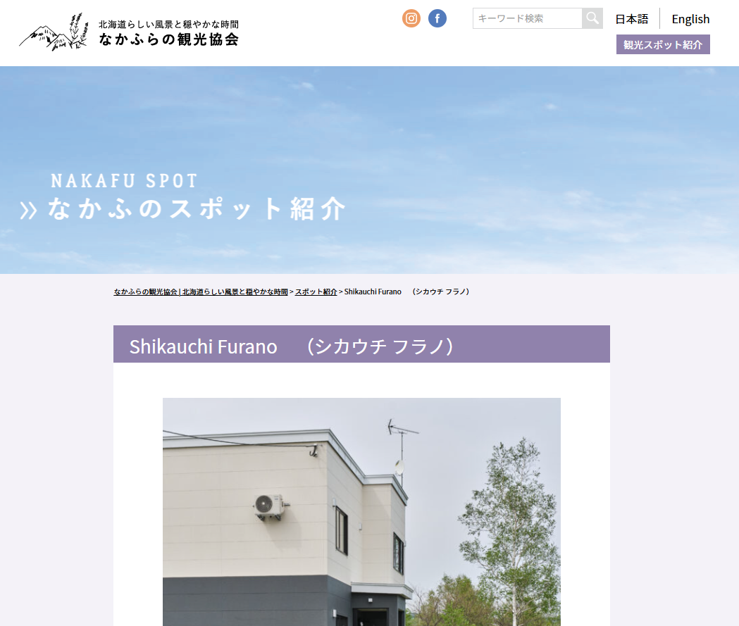 この度のなかふらの観光協会への入会は、具体的な地域連携の成果として実を結びました。当社が中富良野町で運営する新築プライベートヴィラ「Shikauchi Furano(シカウチ フラノ)」が、協会の公式サイト「スポット紹介」ページに正式に掲載されました。