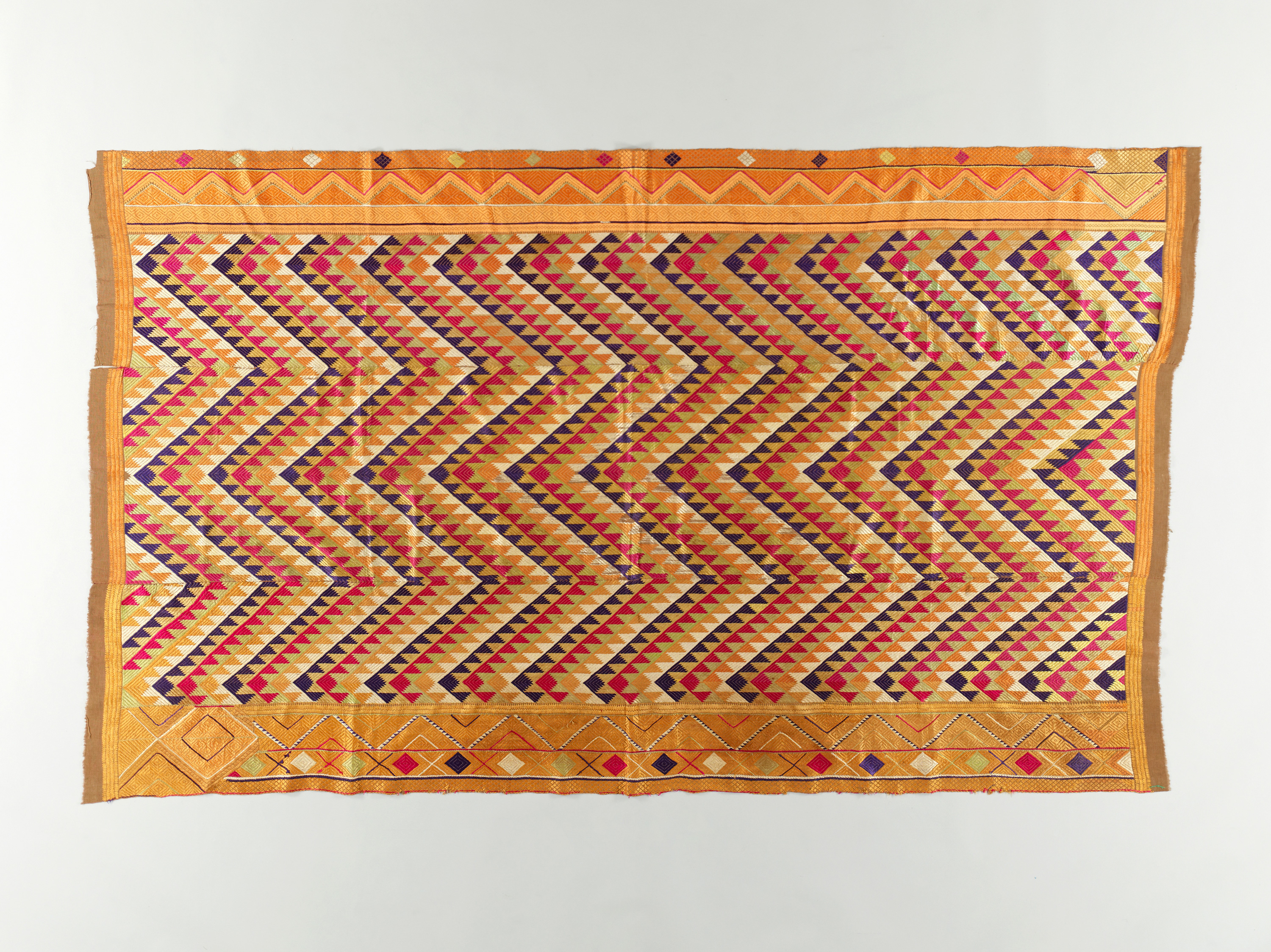 プルカリ(覆い布) 茶木綿地波形幾何文様刺繍(ぷるかり おおいぬの ちゃもめんじなみがたきかもんようししゅう)