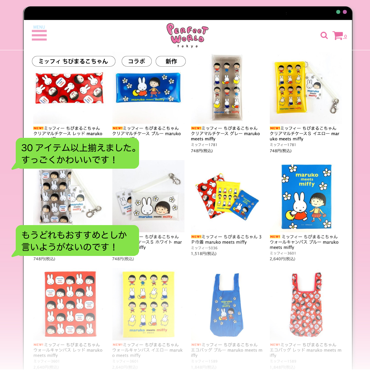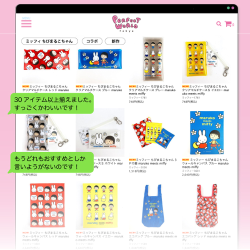ミッフィーとちびまる子ちゃんのコラボアイテムを、一気にご紹介しました。