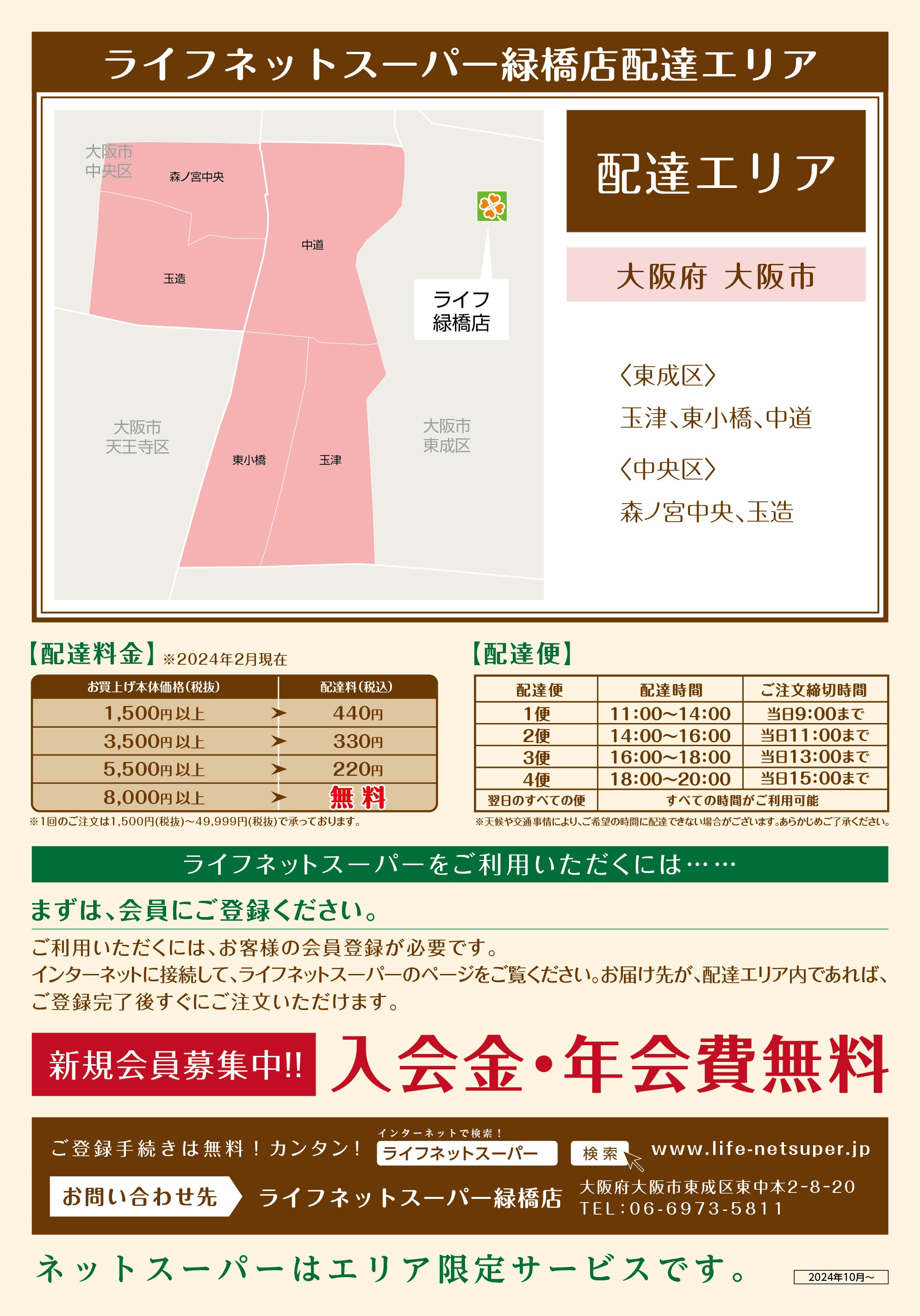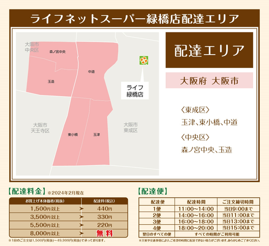 ライフネットスーパーのページをご覧いただき、お届け先が配達エリア内であれば、ご登録完了後すぐにご注文いただけます。
