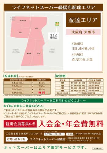 “おいしい” “ワクワク” “ハッピー” をお届けするライフコーポレーションは、10月9日(水)より緑橋店で「ライフネットスーパー」のサービスを開始しました。