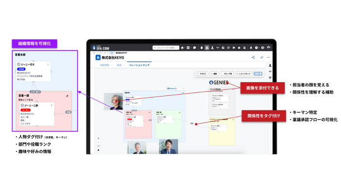 株式会社ジーニー(本社:東京都新宿区、代表取締役社長:工藤 智昭、以下ジーニー)が提供する営業管理ツール「GENIEE SFA/CRM」がリレーションマップ機能を提供開始しました。
