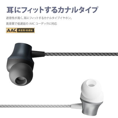 断線しにくいタフケーブルを採用したカナル型ワイヤレスステレオイヤホンです。省電力、高速通信のBluetooth® 5.0搭載で高音質・低遅延の「AAC」にも対応し快適な音質を楽しめます。耳にフィットするカナル型を採用し、遮音性が高く音漏れしにくいデザインとなっています。ケーブル部に音楽再生/停止、着信応答/終話が快適にできるマイク付きリモコンを搭載。また、IPX5防水相当の防滴対応なのでランニングやスポーツ時の汗など日常生活の中での防水・防汗設計を備えています。フィット感を選べる3サイズのイヤーピース付属。