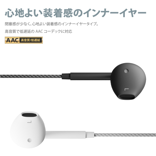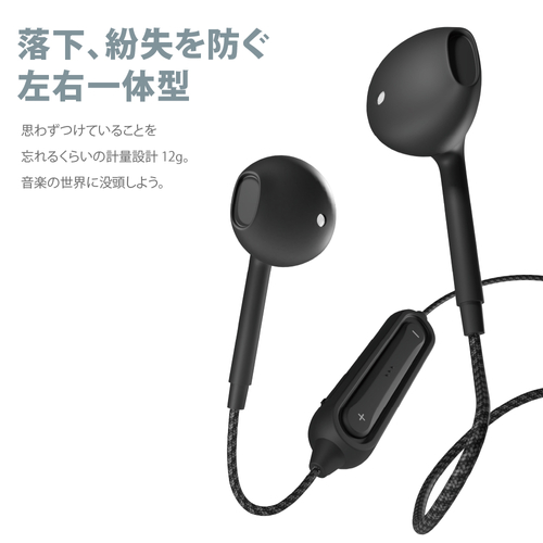 断線しにくいタフケーブルを採用したインナーイヤー型ワイヤレスステレオイヤホンです。省電力、高速通信のBluetooth® 5.0搭載で高音質・低遅延の「AAC」にも対応し快適な音質を楽しめます。イヤホン部は心地のよい装着感のインナーイヤー型を採用し、長時間の使用にも最適なデザインとなっています。ケーブル部に音楽再生/停止、着信応答/終話が快適にできるマイク付きリモコンを搭載。また、IPX5防水相当の防滴対応なのでランニングやスポーツ時の汗など日常生活の中での防水・防汗設計を備えています。