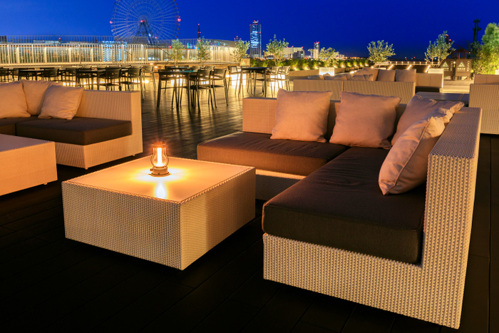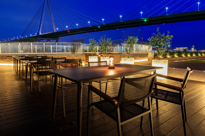 大阪ベイエリアを一望できる、開放感たっぷりのテラス席!