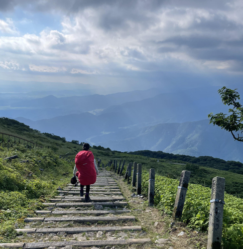 私は2年生の4月に入部したので、実質1年半ほどの活動期間です。初めて登ったのは、標高906mの入道ヶ岳でした。思っていたのと違い想像以上に辛くて、完全に入る部活間違えた!と思いましたが、先輩が私のペースに合わせてくれ、最後まで頑張ることができました。ついに山頂に着いた時に目に飛び込んできた絶景、言葉にならないほど素晴らしかったことを覚えています。仲間と一緒に共有できる達成感もあいまって、もう一度登りたい!と思ってしまいました。その繰り返しで今まで活動を続けています。3年生になってからは泊まり登山が許可され、大きなザックを背負って登っています。テントや食料など荷物も増えて20kgの重さになるのですが、山頂で食べた“たらこパスタ”は本当に美味しくて忘れられません。
