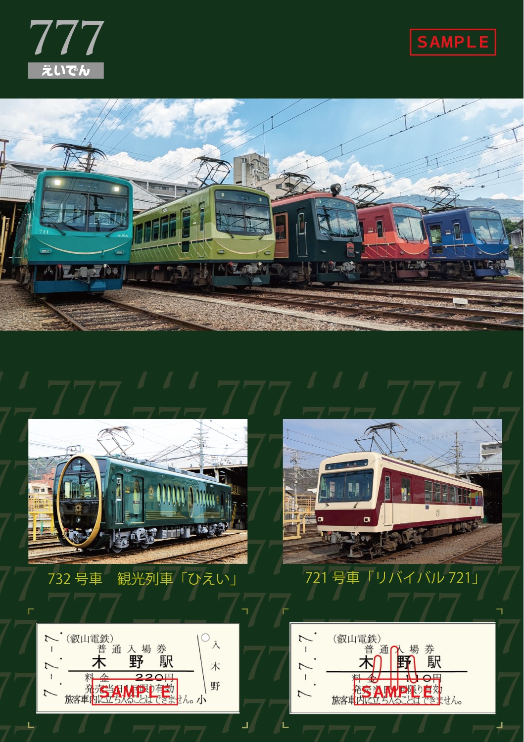 叡山電鉄株式会社(本社:京都市左京区、社長:豊田秀明)では、令和7年7月7日(月)に「7」が並ぶことを記念して「7並び記念硬券入場券セット」を発売します。