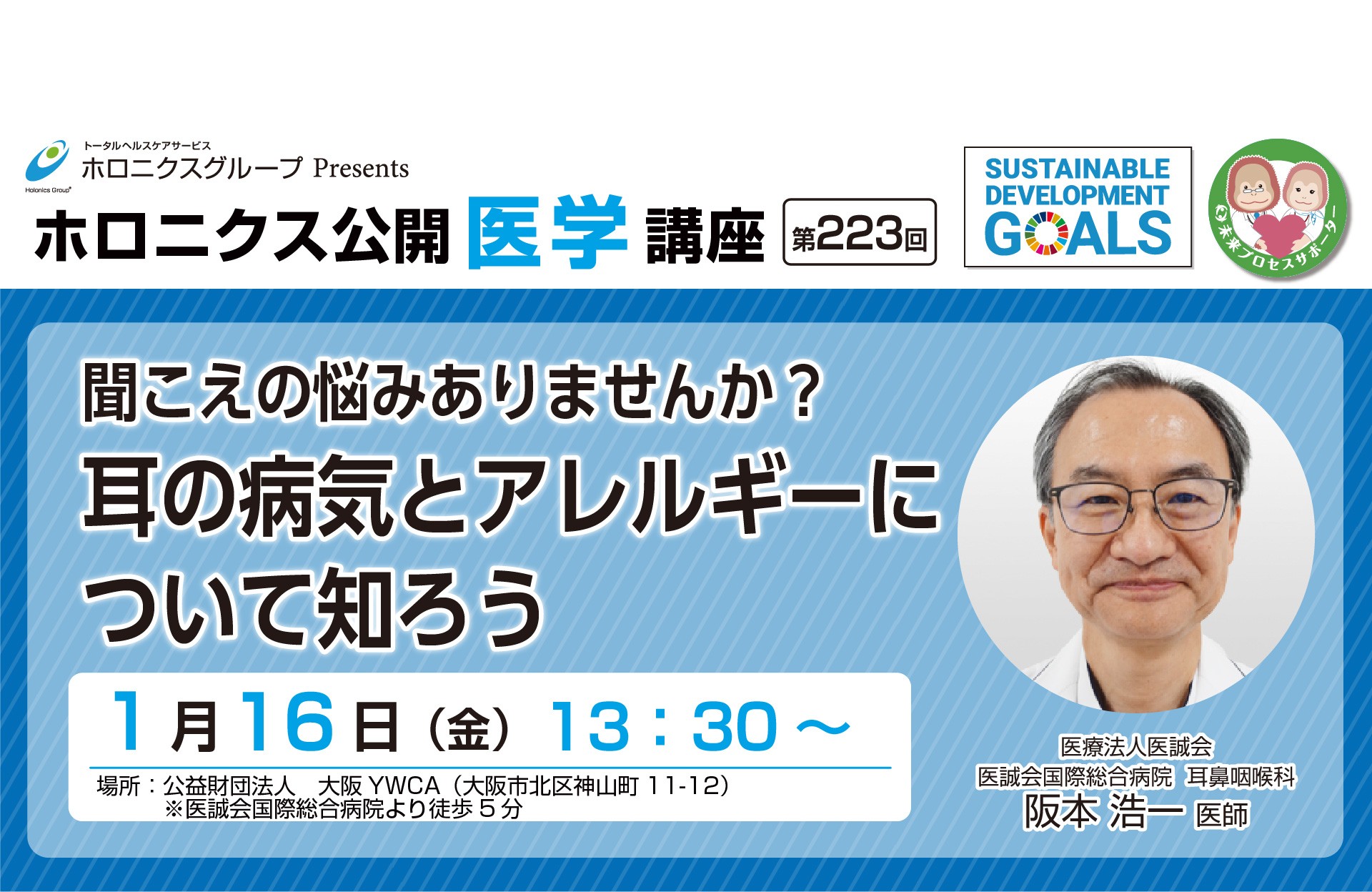 医療法人医誠会(本社:大阪府大阪市、代表者:谷 幸治)は、公益財団法人 大阪YWCAの依頼を受け、2026年1月16日(金)に大阪YWCAにて、出張講座「聞こえの悩みありませんか? 耳の病気とアレルギーについて知ろう」を実施します。本講座では、加齢に伴い増加する難聴や、聞き取りにくさを感じながらも受診に至りにくい現状を踏まえ、耳鼻咽喉科の医師が聞こえの仕組みや対策をわかりやすく解説し、正しい理解につなげる機会とします。