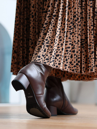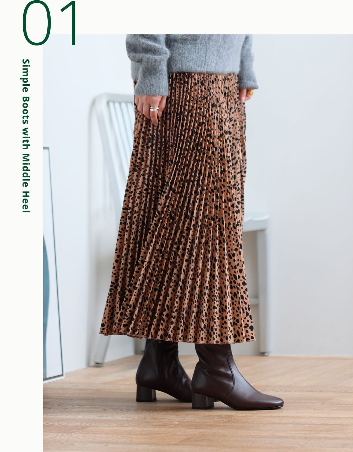 洗練されたシンプルなデザインが幅広いコーディネートで活躍するミドルヒールのブーツ。しっとりと滑らかな手触りのシープレザー、その質感はそのままに、撥水加工を施すことで雨や雪の日でも安心の一足に仕上げました。