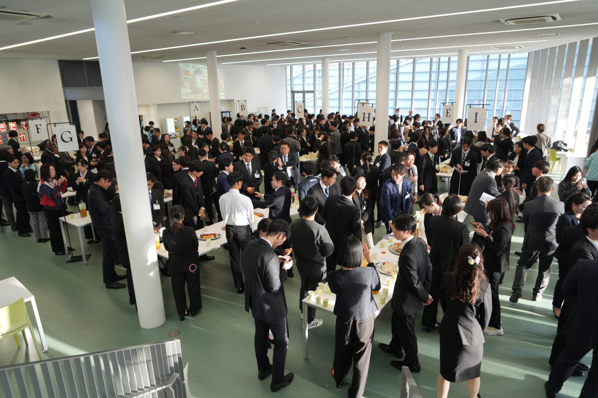 第3部ではカフェテリア“ハーモニー”にて懇親会が開かれ、至る所で企業と学生による情報交換が行われ、双方向のコミュニケーションが活発に図られました。