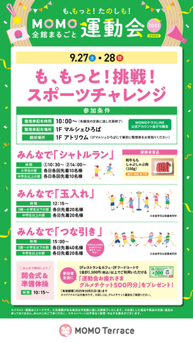 家族で楽しむ“スポーツの秋”in MOMOテラス! 「MOMO全館まるごと運動会」がパワーアップし 9/27(土)・28(日)開催