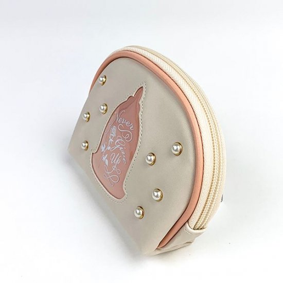 ペールピンクにサーモンピンクの縁取りが優しい雰囲気の、シェルポーチです。
