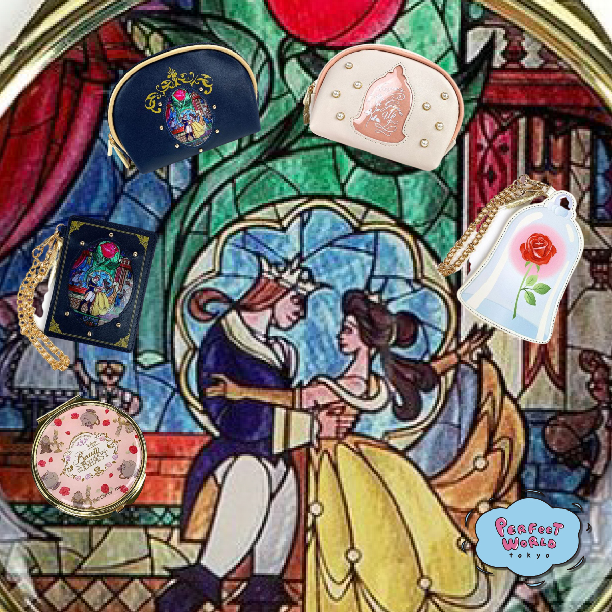 ステンドグラスラインが美しい冬の美女と野獣ファッション小物。ポーチとミラーは筆者激推し♫