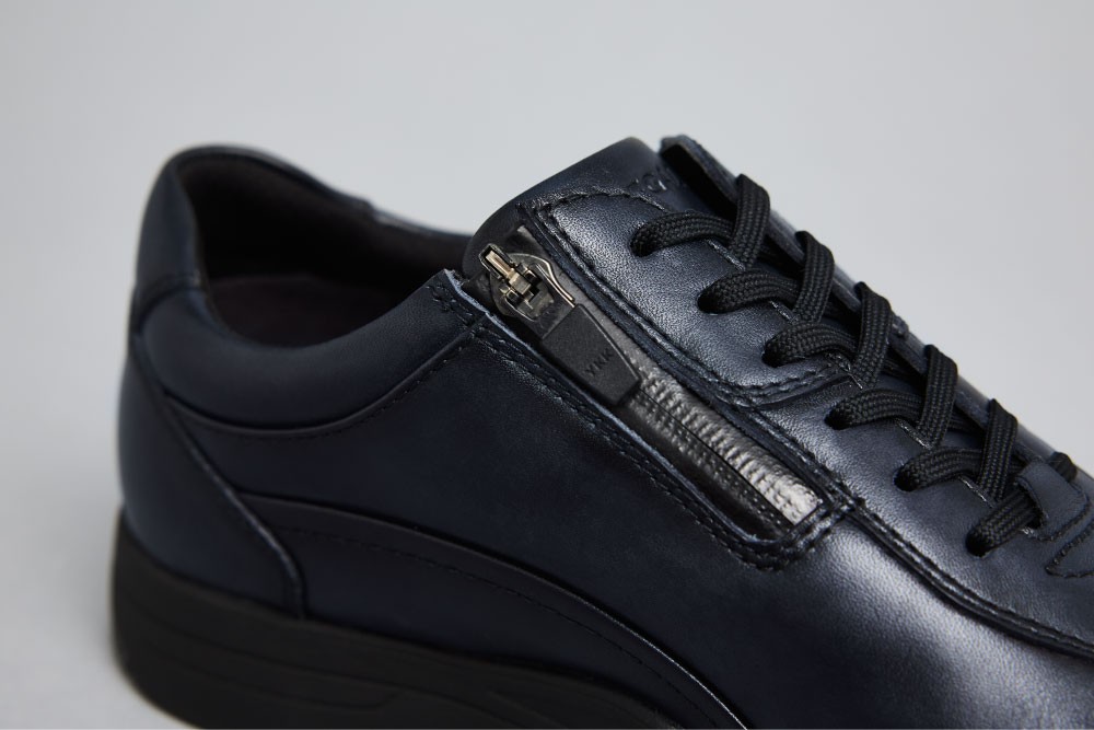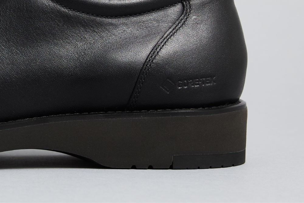 ユーザーからの要望が多いファスナーを装備したことで、脱ぎ履きがより一層スムーズになりました。アウトドアプロダクトに多く見られるファスナーの止水テープは、機能的な美しさを感じさせる印象に仕上げました。