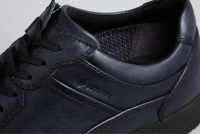 アッパー裏地にはゴアテックス® ファブリクスを使用し、水を通さず靴内部の湿気は外に逃がすことで、つねにドライで快適な着用感をキープ。急な天候の変化にも対応し、シーズンレスでの着用が可能です。