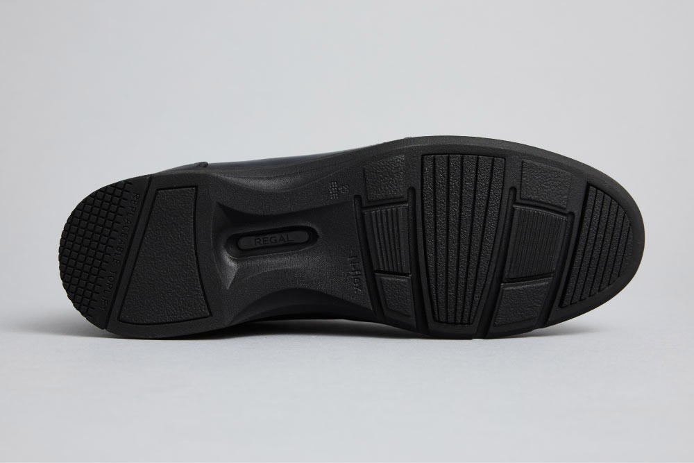 アウトソールには、レースアップタイプと同様、リーガル独自の特許技術「N-flex(エヌフレックス)」を搭載し快適な歩行感をサポートまた。かかとをはじめ、歩行時に負荷が集中する箇所にラバー素材を配置することで、優れたグリップ力を発揮します。