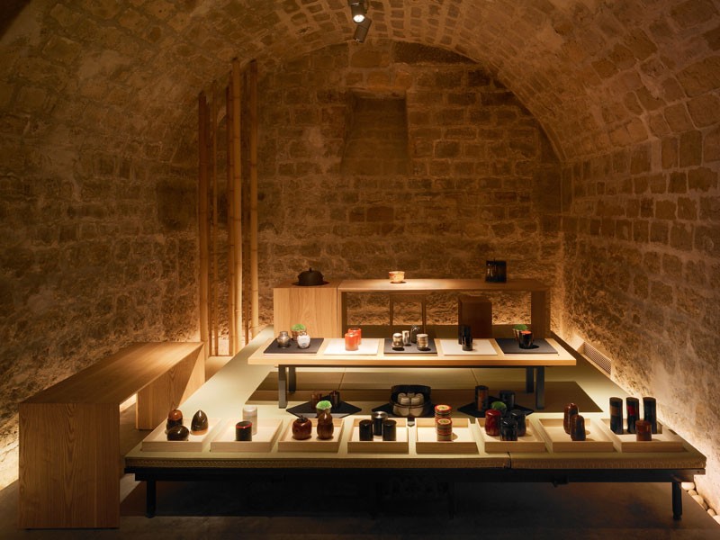 会場となるのは、建築家・隈研吾が手がけた日本茶専門店「寿月堂パリ」の地下にある畳の和空間。個展は二部構成となる。