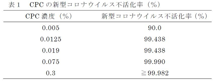 セチルピリジニウム塩化物水和物(CPC)の 新型コロナウイルス不活化作用を確認