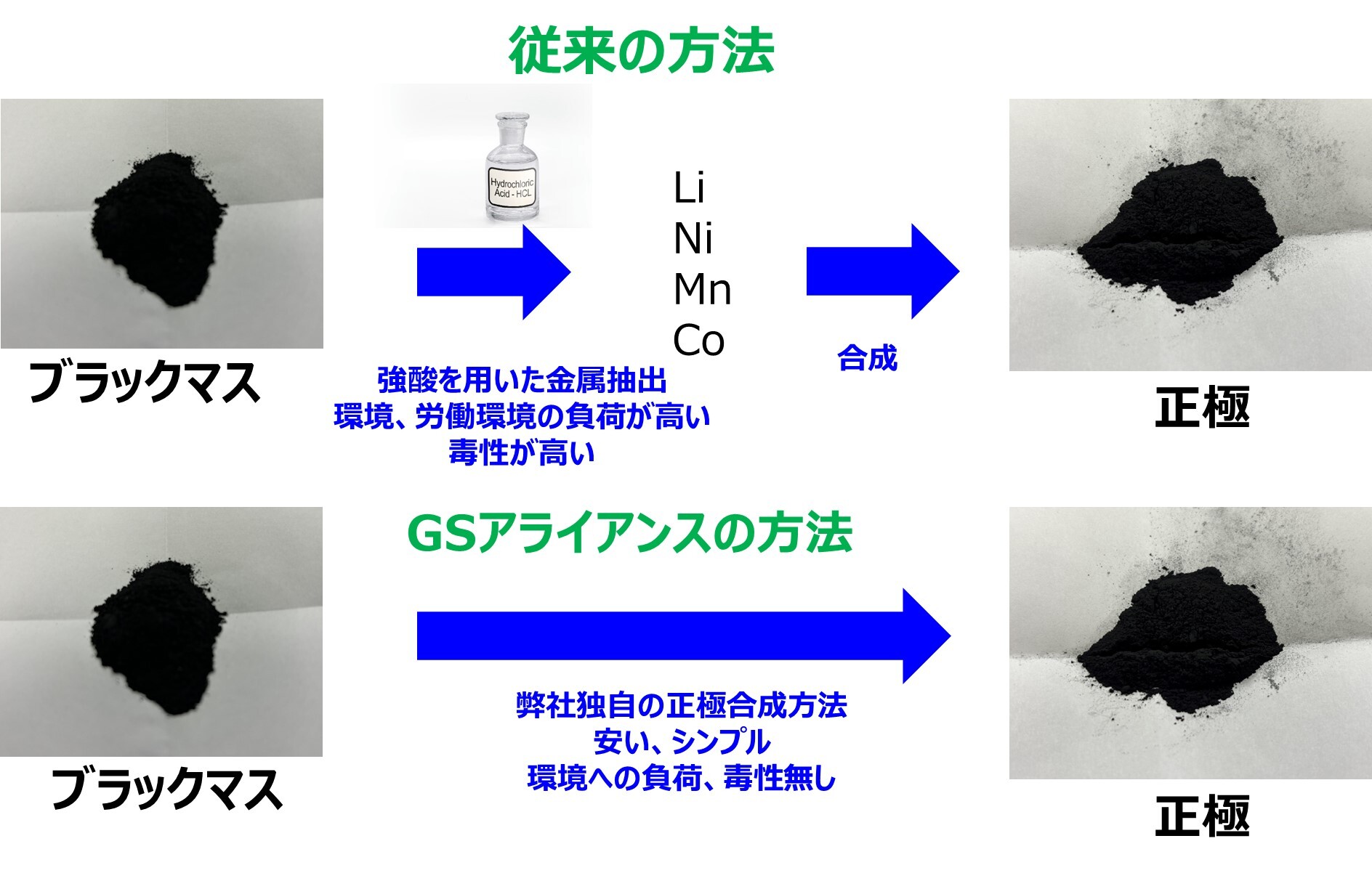 GSアライアンスが、再生材料であるブラックマスから作る 環境に優しいサスティナブルなリチウムイオン電池用正極材料を開発