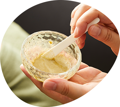 クレンジング・洗顔後、OHLピーリングアクティブでプレピーリングを行います。肌表面の古い角質をケアすることで、ハーブピーリングの効果を高めます。