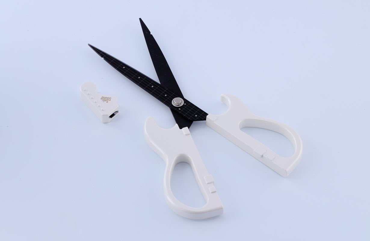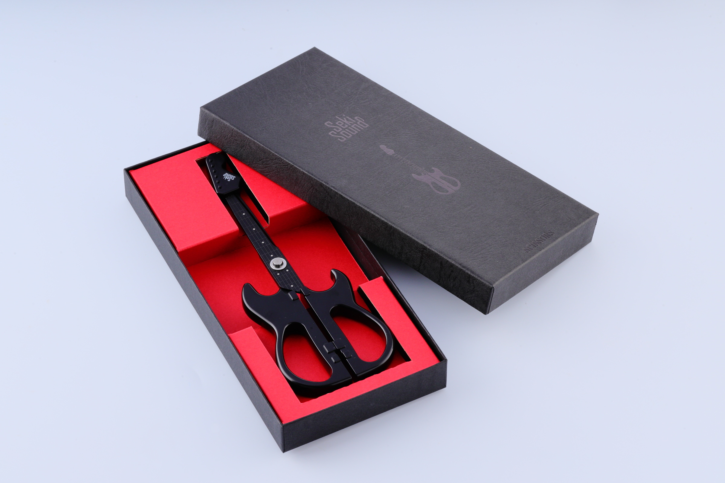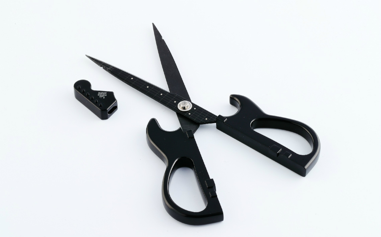 そこで、楽器の中でも人気が高く、インテリアの一部にもなるギターに着目し、ギターとハサミを掛け合わせ、ユーザーが使う時のワクワク感や飾る時のオシャレさを感じてもらえるように、新たなハサミ“Seki Sound”を考案しました。