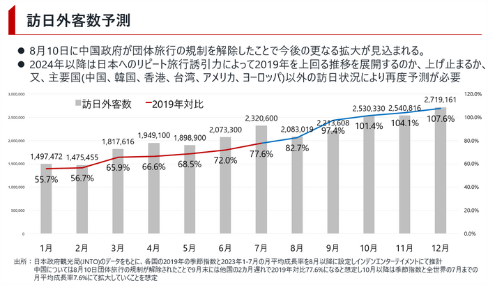 2023年10月から2019年を上回り累計2511万人を達成すると予想