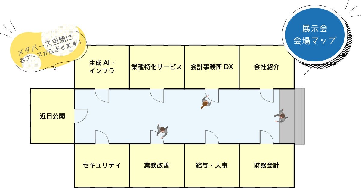 各ブースでは、財務会計、給与・人事からセキュリティ対策まで、業務課題を解決する最新ソリューションをテーマ別にご紹介いたします。また、業務改善ブースでは、販売管理やバックオフィス業務のデジタル化を支援する各種ソリューションをご覧いただけます。あわせて、会計事務所におけるDXの取り組みについてもご案内いたします。