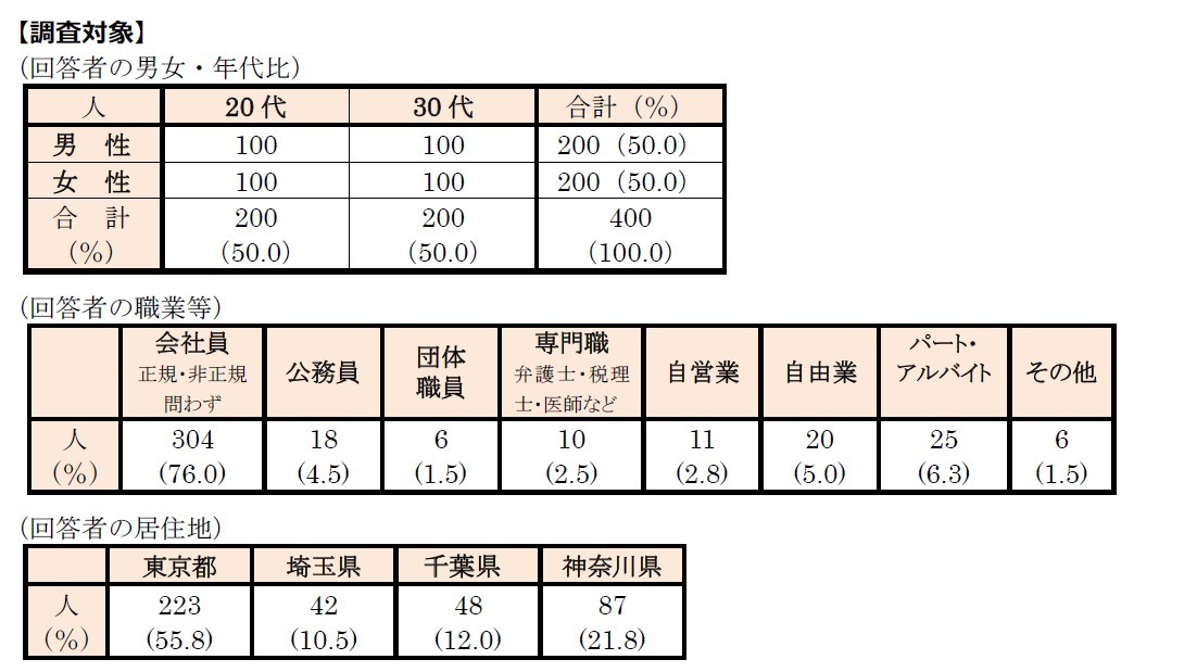 調査対象:首都圏※在住 独身・ひとり暮らしの20代~30代 男女400人