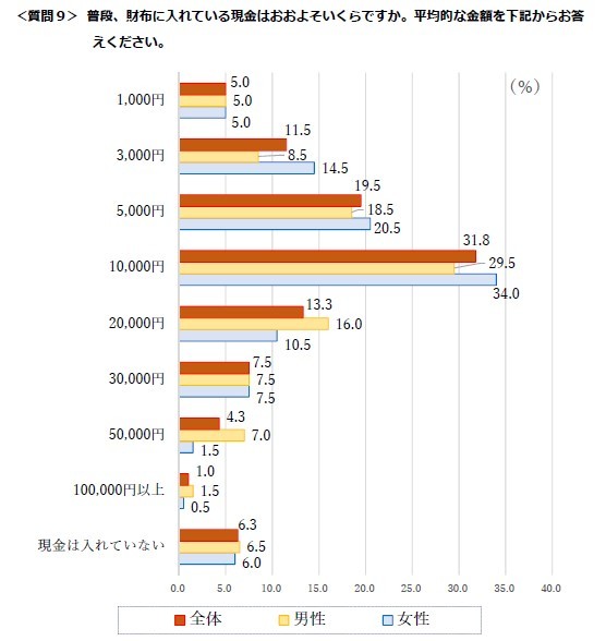 <質問9>普段、財布に入れている現金はおおよそいくらですか。平均的な金額を下記からお答えください。
