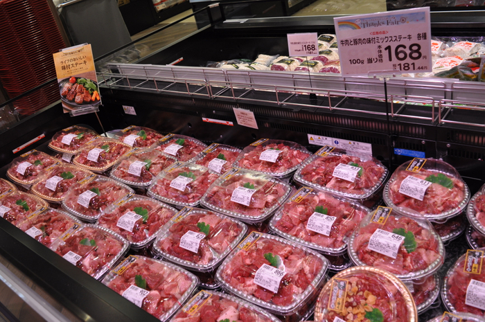 商品棚やレイアウトをリニューアルし、改装前と比べて商品の品ぞろえが約4,000種類増加しています。お客様のニーズにお応えし、冷凍食品の品ぞろえを拡充するほか、お肉売り場にはボリューム満点でお買い得な焼肉セットや味付け済みのミックスステーキが登場いたします。