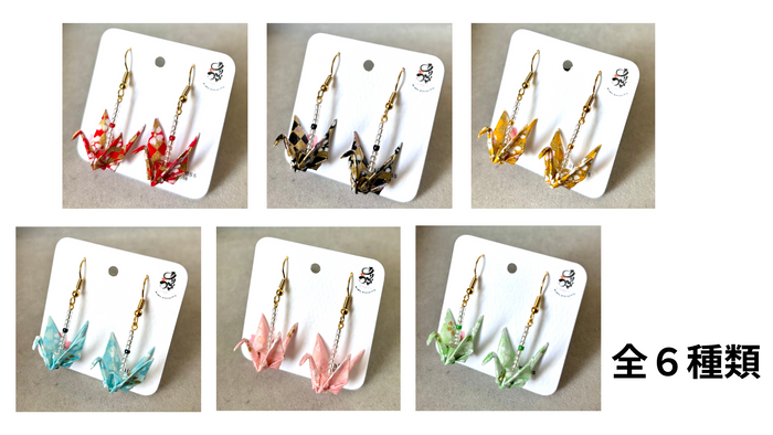 平和と願いの象徴である折り鶴を、丁寧に折り上げたピアス。