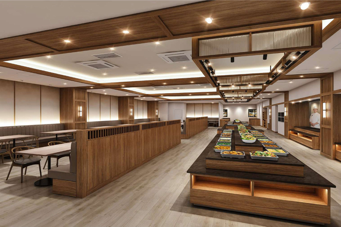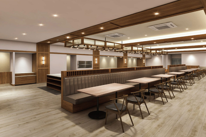 レストランはフロア面積を広げ、ライブキッチンを新設。出来たて熱々の料理はもちろん、ご当地グルメや季節のメニューなど、旅先ならではの豪華さ楽しさでお客様をおもてなしいたします。旅の目的のひとつでもある「食事」を思い出に残るものにできるよう、レストランのフロアは明るく落ち着いたなかにも、にぎわいのあるデザインに。旅行の気分を盛り上げてくれる造りとなっています。また各テーブルの間隔にゆとりを持たせることで、今まで以上にゆったりと食事をお楽しみいただけます。